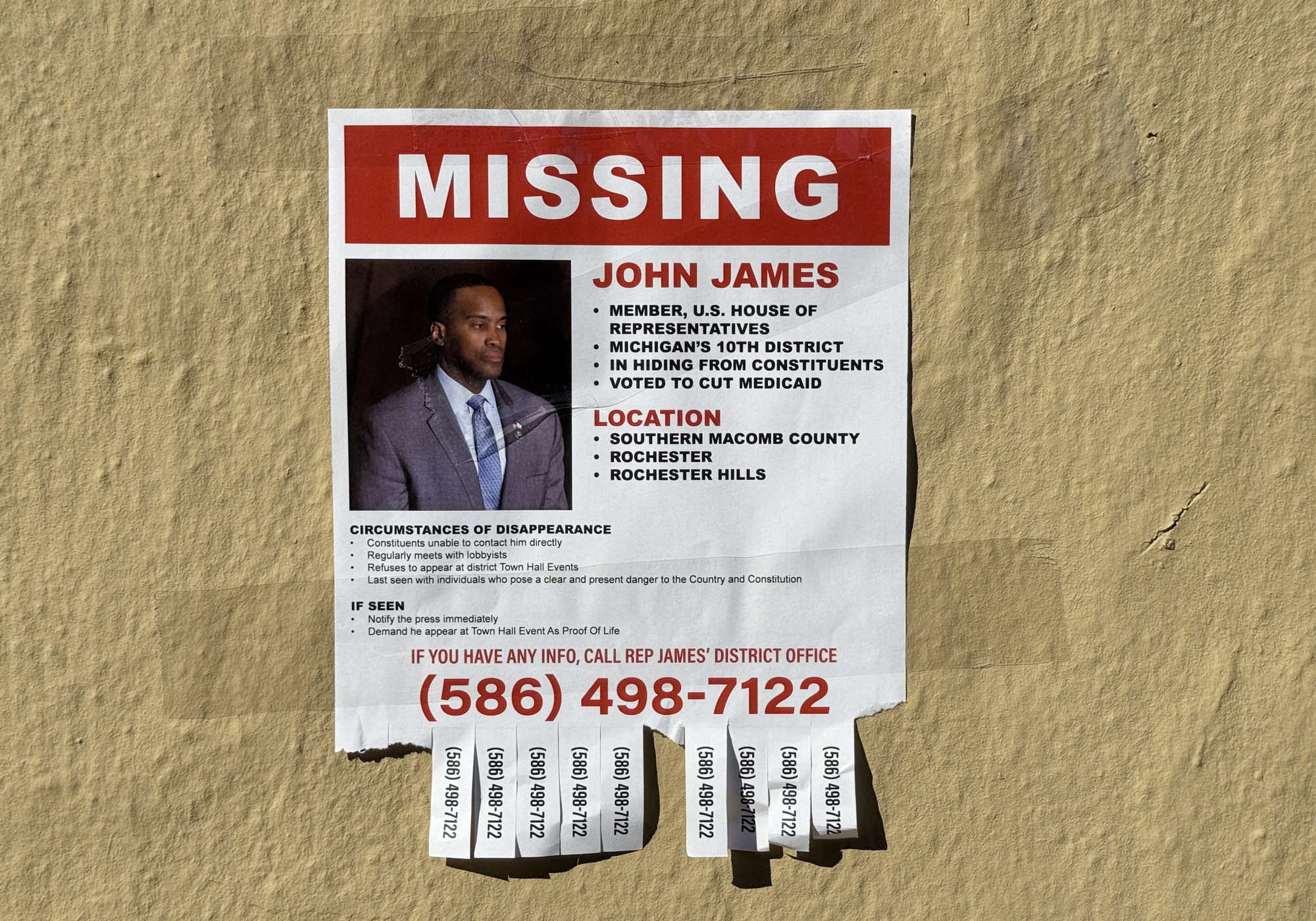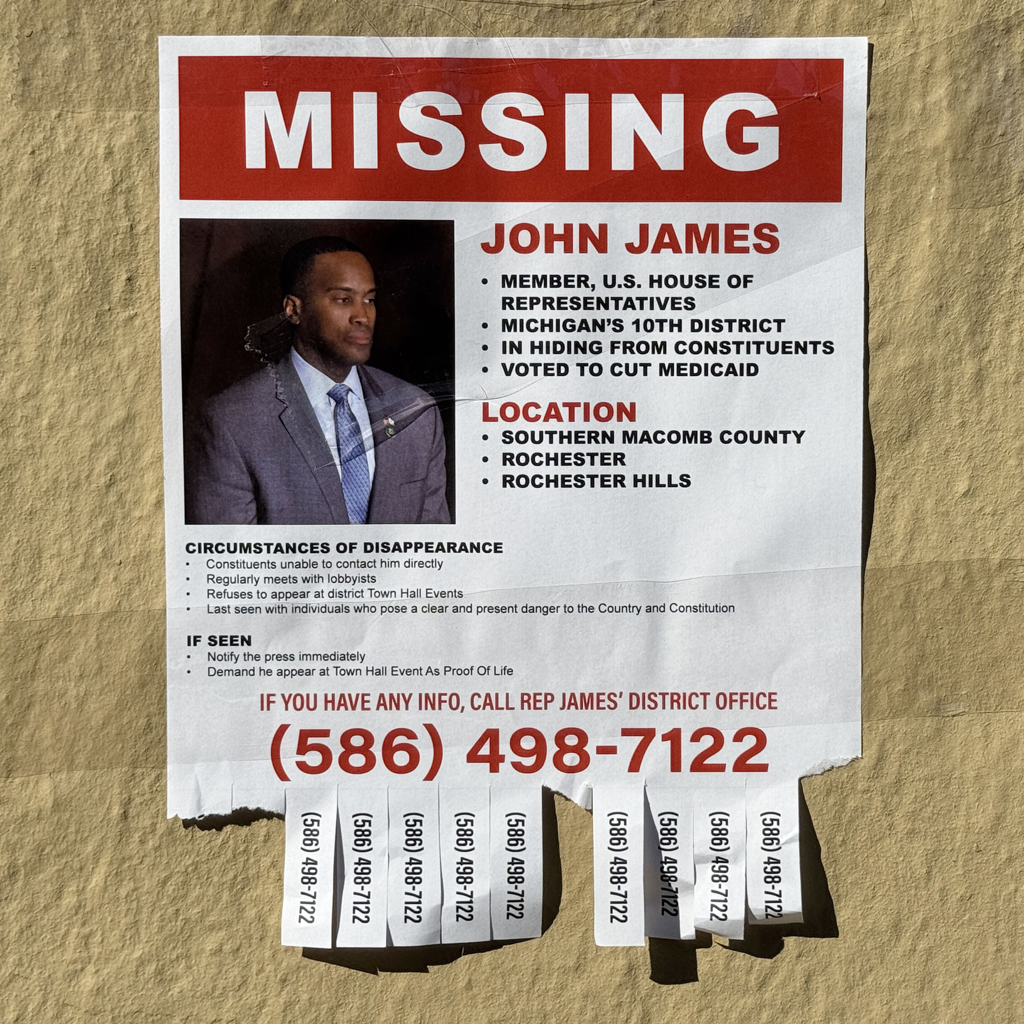 Put concerned constituents minds at ease by letting them know it’s nothing personal, nobody can get an answer from Rep. John James unless they’re a lobbyist. After constituents at several town halls asked questions Republican Members of Congress were uncomfortable answering (i.e.: “Is my social security okay?” “Why are you taking away my healthcare while my taxes pay for yours?” “How come a guy who nobody elected is being paid $8 million per day to cut school lunches, cancer research, and bomb-sniffing K9 dogs?”) the NRCC has advised Republicans to stop talking to their constituents at all. Speaker Mike Johnson told reporters anyone at town halls were not constituents but “professional protestors.”