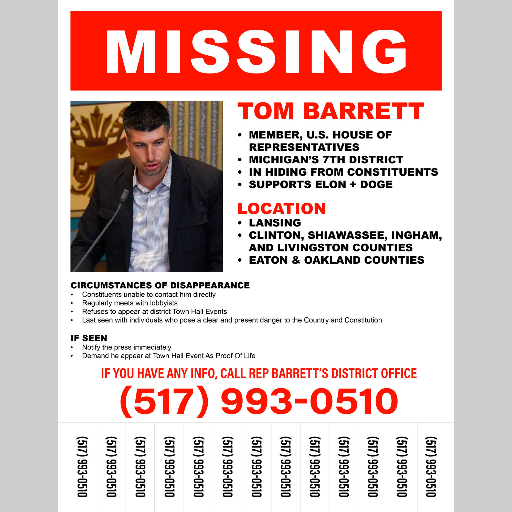 Congress: Missing Person Rep Tom Barrett (MI-07)