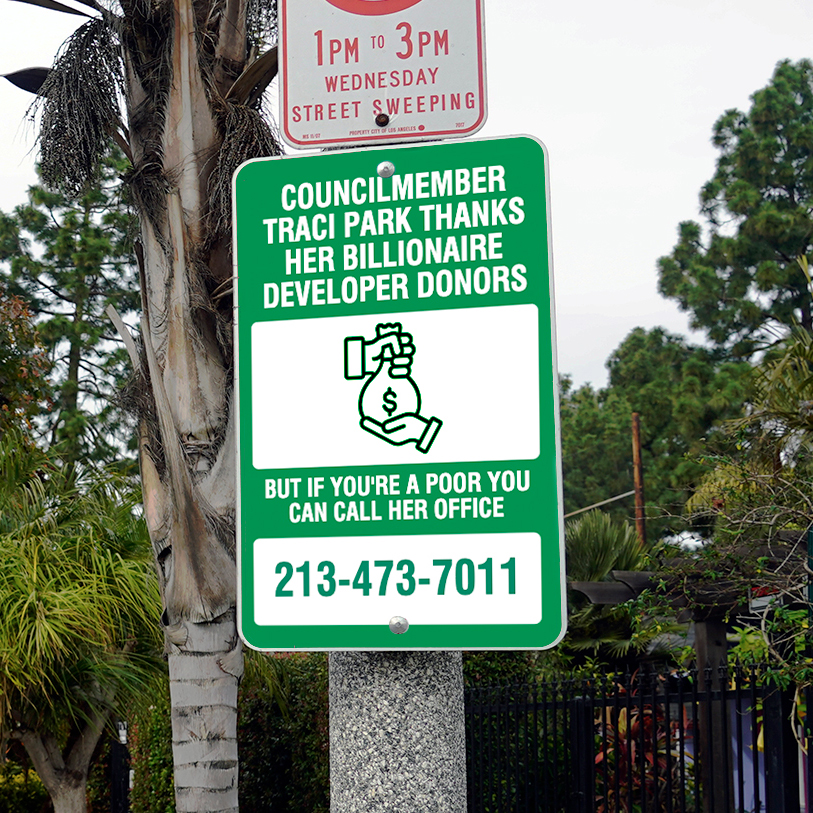 For decades, billionaires have been working behind the scenes to partner with Los Angeles City Councils. They rarely get the credit they deserve. To make matters worse, so-called “Progressive” Councilmembers Nithya Raman, Hugo Soto-Martinez, Eunisses Hernandez, and Ysabel Jurado are bucking established wisdom by prioritizing working class constituents instead of billionaire developers. If this continues, the billionaire developers who make sure our economy works for the moneyed elite might not feel welcome. That’s why, with the Olympics coming in 2028, O&D is helping the council members who respect LA’s rich tradition of working with billionaires express their thanks. Traci Park is a true leader when it comes to taking money from developers, so we’re launching this campaign for her.